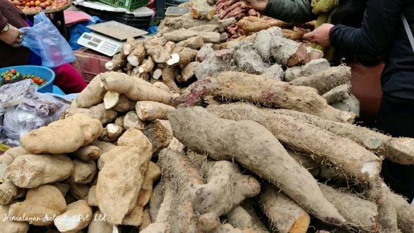 明後日1/15(ネパール公暦ビクラム暦マーグ月初日)はマーゲサンクランティ。 山芋を食べる習慣があり、この日を前に、カトマンズ市内どの八百屋も山芋だらけ!